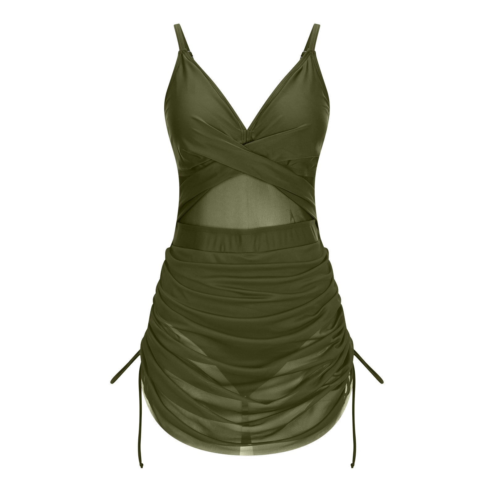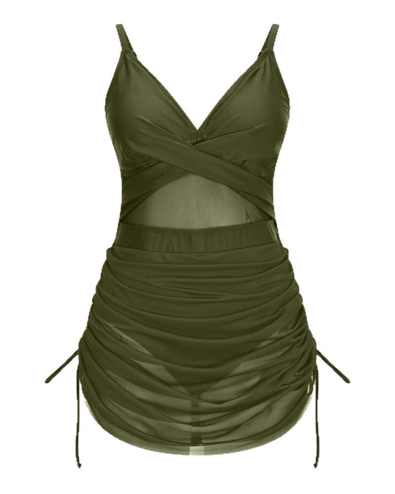 Twist Front One Piece Swimsuit Womens Modest Tummy Control Swim Dress